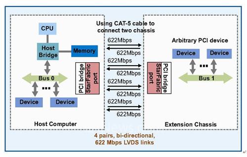 在ADLINK,我們使用了最先進的StarFabric?技術來設計PCI?基礎的擴展解決方案,StarFabric?是一種利用高速序列信號來傳輸數據的標準數據交換技術。ADLINK的PCI?擴展解決方案,使用了成對的LVDS信號將PCI?總線信號轉換成StarFabric?的數據格式,且在數據傳輸的過程中會自動偵測并修正錯誤以確保數據的正確及完整性。此種新式的擴展解決方案,能夠提供長達10米的擴展距離,以及極為穩(wěn)定的傳輸操作。