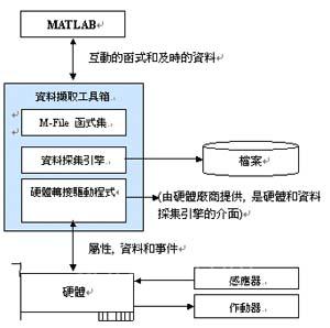 數(shù)據(jù)采集工具箱是一組M-File 函式集和MEX-File 等動(dòng)態(tài)鏈接鏈接庫(kù)所組成的, 專門使用在數(shù)據(jù)采集方面的一組函式庫(kù). 它提供了以下主要的功能