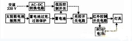 太陽能路燈智能控制系統(tǒng)主要由電源、蓄電池過充和過放保護(hù)電路、紅外控制及光控電路以及燈具組成。