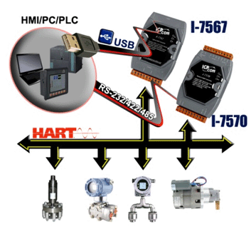 I-7567 / I-7570為泓格科技所開發(fā)的HART通訊接口轉(zhuǎn)換器,它允許PC、PLC、HMI、PAC等控制端通過USB (I-7567) 或串行(I-7570) 接口方式來輕易存取 HART從站設(shè)備,這些HART設(shè)備可以是傳送器、制動(dòng)器或一些電流輸出設(shè)備等。此外,我們也提供免費(fèi)軟件工具 (HC_Tool),讓使用者可以更方便快速地讀取及組態(tài)HART設(shè)備,為了符合更多使用者的需求,泓格科技對(duì)HART轉(zhuǎn)換器模塊新增以下功能。