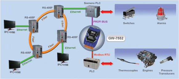 泓格科技所開發(fā)的PROFIBUS網(wǎng)關(guān)(Gateway),能在PROFIBUS和Modbus與HART之間擔(dān)任通訊協(xié)議轉(zhuǎn)換的角色,讓使用者可以通過這些網(wǎng)關(guān)輕易的由PROFIBUS主站訪問Modbus和HART設(shè)備。例如,GW-7552可以實(shí)現(xiàn)PROFIBUS DP從站到Modbus RTU/ASCII主/從站的協(xié)議轉(zhuǎn)換。GW-7553可以實(shí)現(xiàn)PROFIBUS DP從站到Modbus RTU/ASCII主/從站與Modbus TCP伺服端/客戶端的協(xié)議轉(zhuǎn)換。而GW-7557則可以實(shí)現(xiàn)PROFIBUS DP從站到HART主站的協(xié)議轉(zhuǎn)換。通過選擇適當(dāng)?shù)腜ROFIBUS網(wǎng)關(guān),使用者可輕松整合多種協(xié)議彼此的數(shù)據(jù)交換及傳遞。