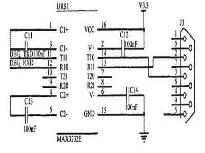 核心控制模塊需要控制任務(wù)管理,路由協(xié)議、同步定位和節(jié)點(diǎn)處理等模塊,所以該控制模塊須具有外設(shè)功能、低能耗、外圍設(shè)備資源豐富等特點(diǎn)才能滿足外圍電路設(shè)計(jì)的要求,目前以ARM7TDMI體系中的AT91SAM7S64結(jié)構(gòu)最為合適。無(wú)線檢測(cè)終端的電源形式有五種分別是1.8V、33V、5V、24V、12V。其中24V和12V這兩個(gè)電壓是由開(kāi)關(guān)電源管理。5V電壓須經(jīng)降壓芯片處理成3.3V后才能使用,從而保證電壓的穩(wěn)定性。AT91SAM7S64內(nèi)部包含了兩個(gè)收發(fā)器,該收發(fā)器有一個(gè)通用的同步異步雙工串口,如圖1所示為串口通信電路原理圖。