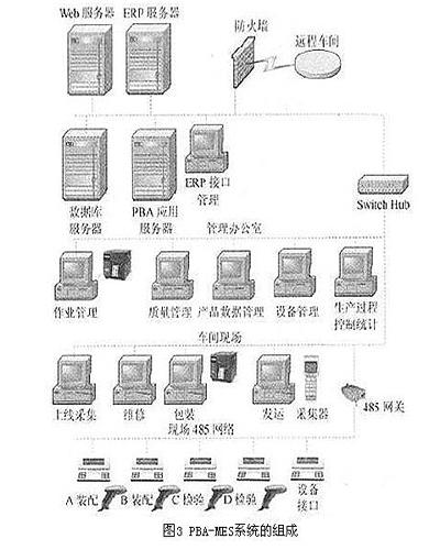 根據(jù)國際MES協(xié)會所描繪的制造企業(yè)信息系統(tǒng)體系結(jié)構(gòu)要求,結(jié)合實際的條碼識別技術(shù),我們自主開發(fā)的PBA-MES系統(tǒng)在ERP/MRP-Ⅱ和車間自動化系統(tǒng)間起到了承上啟下的作用,其主要表現(xiàn)在:為ERP/MRP-Ⅱ系統(tǒng)及時準確地提供數(shù)據(jù)和信息;提高系統(tǒng)運行能力,維持計劃和運行能力的平衡;解決實際生產(chǎn)過程中的計劃運行波動對制定生產(chǎn)計劃的影響,提高ERP/MRP-Ⅱ的適應(yīng)性。同時,通過低層數(shù)據(jù)采集和分析,為改進生產(chǎn)線的運行提供依據(jù)和保證,適應(yīng)敏捷制造模式對生產(chǎn)敏捷性的要求。