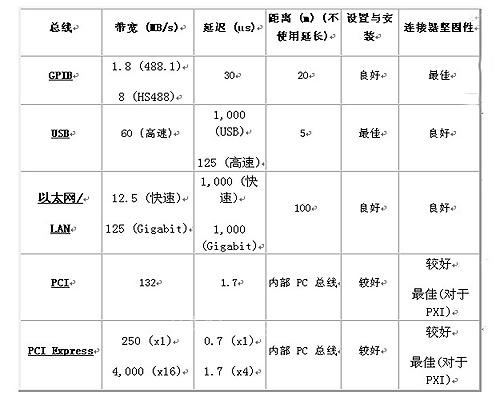影響總線的性能的三個主要因素包括:帶寬、延遲和儀器實現(xiàn)方式。