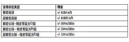 系統(tǒng)基本參數(shù)確定了應(yīng)用要求的基本幾何尺寸。系統(tǒng)的安裝方向同樣也很重要,因為水平方向放置時負(fù)載等于有效載荷重量乘以摩擦系數(shù),而豎直方向放置時負(fù)載等于重力。定位精度要求決定了應(yīng)用所需滾珠絲杠的精度等級。以下表中顯示了不同類型滾珠絲杠的定位精度水平。