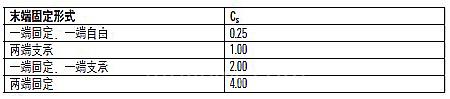 Cs = 末端固定形式系數(shù),數(shù)值如下表所示: