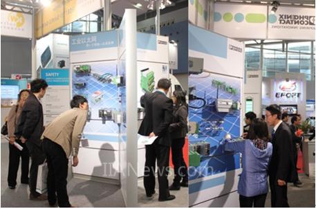 3月4日-6日,2013中國廣州國際工業(yè)自動化技術(shù)及裝備展覽會(以下簡稱“廣州自動化展)成功召開。菲尼克斯電氣聯(lián)手旗下品牌KW-Software重磅出擊,為觀眾帶來精彩紛呈的自動化技術(shù)秀,展出產(chǎn)品及方案陣容強(qiáng)大:包括創(chuàng)新設(shè)計(jì)的直插式彈簧連接超薄型繼電器,QUINT UPS IQ智能不間斷電源,EMpro多功能電量監(jiān)測模塊等電子接口產(chǎn)品;保證工業(yè)網(wǎng)絡(luò)高可靠性的光纖傳輸解決方案,從急停繼電器到可編程安全模塊的安全解決方案以及工業(yè)以太網(wǎng)、無線和工業(yè)網(wǎng)絡(luò)安全解決方案;緊湊而又強(qiáng)大的Easy Automation控制系統(tǒng),簡單集成、開放靈活的IT-Powered Automation系統(tǒng),基于Profinet實(shí)時以太網(wǎng)以及多項(xiàng)創(chuàng)新技術(shù)的高性能冗余控制器等自動化產(chǎn)品與系統(tǒng);作為全球領(lǐng)先的IEC61131軟件提供商,KW-Software也展出了SoftPLC、運(yùn)動控制及機(jī)器人、工業(yè)實(shí)時以太網(wǎng)Profinet以及安全PLC等自動化軟件解決方案,與觀眾一同分享最前沿的工控軟件的技術(shù)魅力。