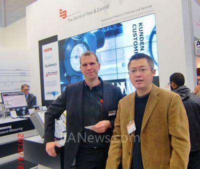 Badger Meter Europa公司的展臺(tái)上,我們看到了醒目的廣告語(yǔ):在全球流量測(cè)量與控制方面首屈一指。公司產(chǎn)品經(jīng)理Mr. Michael Steiner先生向我們介紹,Badger有不同的技術(shù),可以說(shuō)適用于各種各樣的工業(yè)領(lǐng)域,其中,Turbine Meters , Flow Principles,Long product range是公司最值得強(qiáng)調(diào)的個(gè)詞。尤其是在油、水、蒸汽等應(yīng)用領(lǐng)域,其產(chǎn)品系所能承受的工作壓力值務(wù)相當(dāng)之高(最高可達(dá)4000bar)。在一些應(yīng)用領(lǐng)域,幾個(gè)實(shí)力強(qiáng)勁的同行都沒(méi)有他們同樣的產(chǎn)品,尤其在流量領(lǐng)域,正如他所言“”有人說(shuō)我們是No. 1,是不是我不好說(shuō),不過(guò)我們一直向此方向努力”。