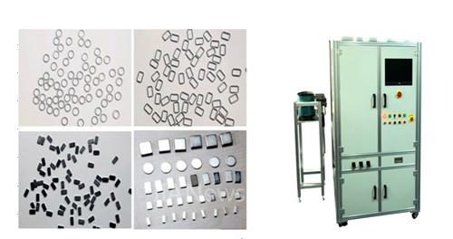 “釹鐵硼工件尺寸外觀檢測設(shè)備”——領(lǐng)邦公司最新研發(fā)的自動(dòng)全檢設(shè)備,能快速檢測多種規(guī)格產(chǎn)品的多項(xiàng)尺寸數(shù)據(jù)及上下兩面的外觀缺陷,并進(jìn)行自動(dòng)分選。該設(shè)備檢測效率達(dá)200~400片/分鐘(視工件尺寸形狀而定), 產(chǎn)品尺寸檢測范圍為2~20mm。
