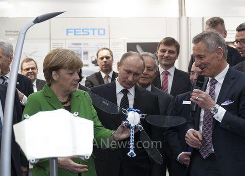 德聯(lián)邦總理安格拉·默克爾博士在 2013 年 4 月 8 日的工業(yè)博覽會期間參觀了 Festo 展臺。今年陪同總理參觀的貴賓是俄羅斯總統(tǒng)弗拉德米爾·普京。俄羅斯是 2013 年漢諾威工業(yè)博覽會的合作伙伴國。在今年的工業(yè)博覽會上,F(xiàn)esto 不僅展出了世界一流的生產(chǎn)技術(shù),也又一次展示了其最新的“未來理念”,以及與“產(chǎn)業(yè)集成化”和“產(chǎn)業(yè) 4.0”主題密切相關(guān)的話題,包括模擬蜻蜓飛行狀態(tài)的飛行裝置BionicOpter(仿生蜻蜓)。這次展覽還重點展示了為合作伙伴國的石油和天然氣行業(yè)特別開發(fā)的防磨損 GBVA 驅(qū)動系統(tǒng)。