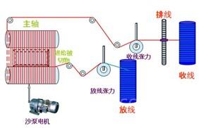 (2)說明:根據(jù)收線輪的寬度和線寬以及排線伺服的分辨率以及絲桿的導(dǎo)程可以計(jì)算出L和P的值,排線就能夠根據(jù)收線的旋轉(zhuǎn)方向和行進(jìn)量在正確的放線進(jìn)行均勻排線。