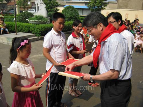 長谷川副總經(jīng)理頒發(fā)獎學(xué)金給成績優(yōu)秀學(xué)生