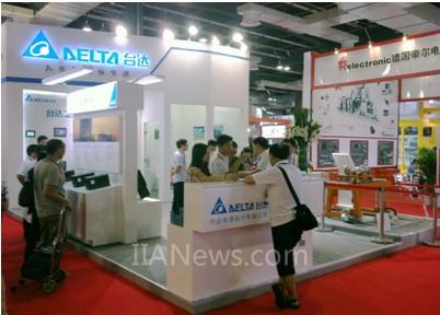 圖1:起重展上的臺(tái)達(dá)展臺(tái)時(shí)尚大氣,吸引眾多觀眾。