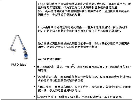法如科技將為本次Control China 2013帶來其最熱門的3D測(cè)量解決方案系統(tǒng),最具代表性的就是FARO Edge測(cè)量臂——FaroArm測(cè)量臂系列最暢銷的一款產(chǎn)品,以及激光跟蹤儀家族的新成員——FARO Laser Tracker Vantage激光跟蹤儀。
