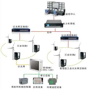 第二層,工控機(jī)和工業(yè)交換機(jī):通過(guò)工控機(jī)可以現(xiàn)場(chǎng)查看分機(jī)設(shè)備的運(yùn)行狀態(tài),并可由工控機(jī)下達(dá)控制風(fēng)葉運(yùn)行狀態(tài)的命令。通過(guò)工業(yè)交換機(jī)和電場(chǎng)服務(wù)器進(jìn)行數(shù)據(jù)交換,采用高可靠的工業(yè)級(jí)的設(shè)備能保證系統(tǒng)的正常穩(wěn)定的運(yùn)行。平板電腦的使用環(huán)境溫度為-25℃ ~ 60℃,具有很強(qiáng)的現(xiàn)場(chǎng)適應(yīng)能力。它可將數(shù)據(jù)存儲(chǔ)在工業(yè)電子盤(pán)中即時(shí)網(wǎng)絡(luò)中斷,采集數(shù)據(jù)也可以得到很好的保存。整機(jī)采用低功耗密封嵌入式平臺(tái),大大提高了在惡劣環(huán)境中的穩(wěn)定性和可靠性。通過(guò)觸摸屏可以現(xiàn)場(chǎng)查看、改變風(fēng)機(jī)的數(shù)據(jù)。