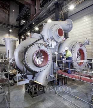 內(nèi)蒙古的空分項目將為伊泰集團的煤液化廠供應(yīng)氧氣。每臺機組的空氣壓縮機為STC-SR系列軸流-離心式壓縮機,每小時進氣量為72萬立方米。每臺機組均配備了六段整體齒輪式增壓機及SST-600型蒸汽輪機(作為共用驅(qū)動裝置)。壓縮機組將在2014年夏開始交付給客戶。