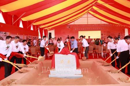 圖說:中國建筑設(shè)計(jì)研究院(集團(tuán))院長修龍(中間左一)、臺(tái)達(dá)環(huán)境與教育基金會(huì)董事長鄭崇華(中間左二)、中國可再生能源學(xué)會(huì)理事長石定寰(中間左三)、蘇州市副市長徐明(中間左四)等領(lǐng)導(dǎo)嘉賓共同為“中達(dá)低碳示范住宅項(xiàng)目”奠基。