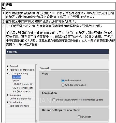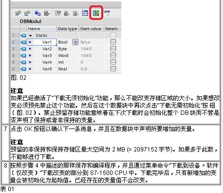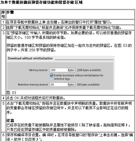 如果想下載全局數(shù)據(jù)塊改變的部分或者功能塊的接口到 CPU 中,而且不想改變當前值,在 TIA 中必須先在塊的“設(shè)置”選項卡中激活存儲保留功能。當再次下載的時候,已經(jīng)下載的變量不會受到影響。為了滿足“下載無需初始化功能”,下面的硬件和軟件要 求必須要滿足: