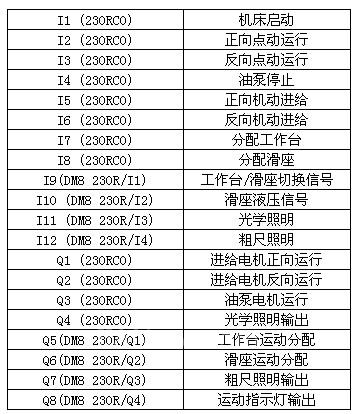 HT200B型回轉(zhuǎn)工作臺(tái)的PLC輸入輸出信號分配如下表1所示: