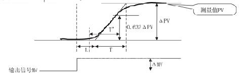 如上圖所示,在流程響應(yīng)數(shù)據(jù)中畫上切線,求得過(guò)程增益Kp=ΔPV/ΔMV、死區(qū)時(shí)間L、延遲時(shí)間(時(shí)間常數(shù))T。把ΔPV設(shè)定為100%,延遲時(shí)間T’(=T)為響應(yīng)達(dá)到63.2%的時(shí)間。