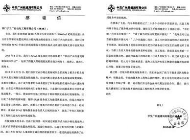 這是SFAE與中交廣州航道局的第一次境外船舶現(xiàn)場(chǎng)服務(wù)項(xiàng)目,服務(wù)結(jié)束后我們收到了中交廣州航道局有限公司設(shè)備部發(fā)來的誠(chéng)摯的感謝信,向境外現(xiàn)場(chǎng)服務(wù)支持中沈工的優(yōu)秀表現(xiàn)和SFAE 各位領(lǐng)導(dǎo)的大力支持致謝。SFAE通過專業(yè)的服務(wù)技術(shù)和“想客戶所想”的服務(wù)精神在航道局的服務(wù)領(lǐng)域旗開得勝,為雙方今后的長(zhǎng)期友好合作奠定了基礎(chǔ)。