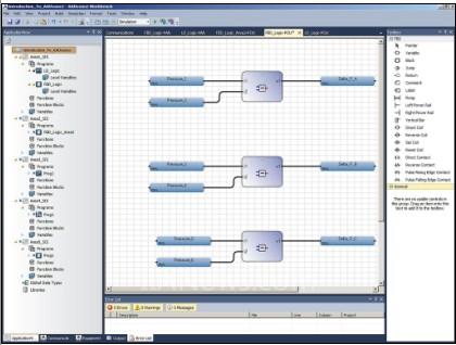 AADvance Workbench 2.0 具有一個多用戶、多控制器環(huán)境,其中內(nèi)置版本控制和追蹤功能。它還具備現(xiàn)代化的圖形用戶界面 (GUI)、拖放配置功能、內(nèi)置的仿真和符合 IEC61131 標準的編程語言,可實現(xiàn)最佳的靈活性。借助 Workbench,應(yīng)用設(shè)計人員可以導入、導出或移植項目,還能使用方便的功能性插件監(jiān)視和管理控制器狀態(tài)和通信協(xié)議,此外,還可使用其它能夠節(jié)省開發(fā)時間的工具。