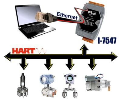 I-7547是Ethernet轉(zhuǎn)HART轉(zhuǎn)換器,為HART主站設(shè)備,通過Etherent接口采虛擬COM端口方式存取HART從站設(shè)備,這些HART從站設(shè)備可以是傳送器、觸動器、電流輸出設(shè)備等等。I-7547提供4個HART通道,每個通道均內(nèi)建可用來設(shè)定 250 Ω 回路電阻的跨接器,用戶可依據(jù)HART網(wǎng)絡(luò)需求彈性運(yùn)用,因此通過使用I-7547,不但可以做為 HART bus 監(jiān)視器,也可應(yīng)用在監(jiān)控、遠(yuǎn)程數(shù)據(jù)采集、環(huán)境控制、實(shí)驗(yàn)室設(shè)備研究、工廠自動化及石化廠應(yīng)用等。此外,泓格科技也提供方便易用的軟件工具(HC_Tool),在無需編輯任何程序下,即可方便設(shè)定I-7547模塊參數(shù)及快速存取各個HART設(shè)備信息。