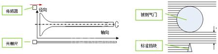 本方案采用機(jī)器視覺技術(shù)路線,運(yùn)用陰影投射原理測試氣門軸向各截面的尺寸。光幕傳感沿氣門軸向運(yùn)功,通過掃描氣門外形,獲得氣門軸向及徑向尺寸;使氣門轉(zhuǎn)動,可通過光幕傳感器獲得徑向跳動數(shù)據(jù);并自動判定是否合格。