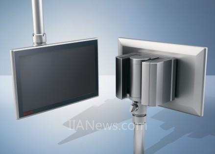 CP32xx 面板型 PC 的后部區(qū)域(需要用于旋轉(zhuǎn)和傾斜相連接的安裝臂)也可以高效地用于使用盡可能少的空間適應(yīng)疊加的工業(yè) PC。這一解決方案中使用的組件相互之間熱隔離:為了節(jié)省空間,計(jì)算機(jī)構(gòu)造被設(shè)計(jì)成U形圍繞在安裝臂周圍,使用冷卻片進(jìn)行被動散熱。