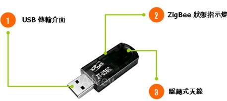 便攜式ZT-USB系列模塊支持USB與ZigBee (IEEE802.15.4標(biāo)準(zhǔn)協(xié)議并遵循ZigBee Pro/ZigBee 2007規(guī)范)無線信號的轉(zhuǎn)換。本模塊可提供60米有效通訊距離(直線可視)及16個在2.405 GHz到2.480 GHz(ISM規(guī)范)的無線頻道。ZT-USB系列模塊不僅提供點(diǎn)對點(diǎn)通訊,并且可自動路由ZigBee無線封包,有效延伸通訊距離,以提升信號質(zhì)量。