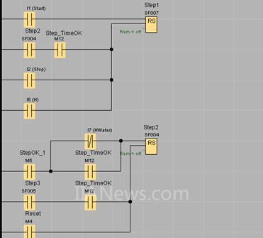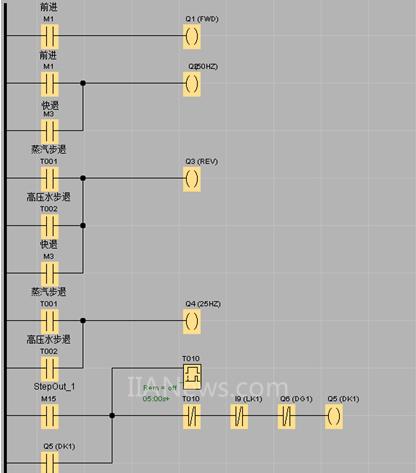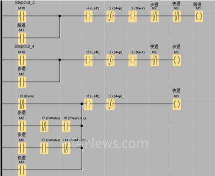 本設(shè)備程序采用 LOGO! 所支持的梯形圖語言編寫,根據(jù)工藝需求,設(shè)備運動方式分為:前進、步退、快退 三種。