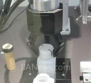 圖3:機(jī)械臂下部安裝末端執(zhí)行器,可準(zhǔn)確抓握、夾取和插入包括圓柱形在內(nèi)的不同形狀、不同尺寸的物品,并能在操作的同時(shí)對(duì)施加的握力自動(dòng)進(jìn)行調(diào)節(jié),以免機(jī)器人在開啟和扣合藥瓶和化妝品瓶蓋時(shí)捏碎或損壞瓶身。