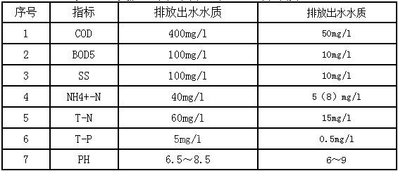 (2)根據(jù)現(xiàn)有水廠實際進水水質(zhì)監(jiān)測數(shù)據(jù)以及遼寧省頒布的《污水綜合排放標準》的要求,確定設計進、出水水質(zhì)為: