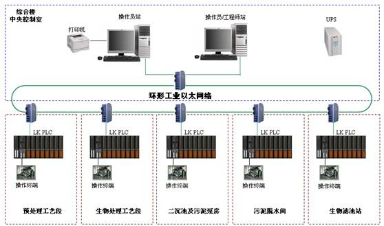 整個系統(tǒng)設1個中央控制室、4個現(xiàn)場PLC控制站組成?,F(xiàn)場PLC控制站,由可編程序控制器(PLC)系統(tǒng)及檢測儀表組成,對污水處理廠各工藝過程進行分散控制;再由中央控制室(CCR),對全廠實行集中管理。中央控制室、PLC控制站之間的數(shù)據(jù)通訊采用高速的、實時的工業(yè)以太網(wǎng),網(wǎng)絡結(jié)構(gòu)為環(huán)形,通訊速率為100Mbps,傳輸介質(zhì)為光纖。系統(tǒng)整體性能具有如下特點: