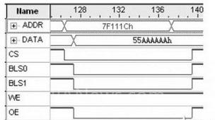 根據(jù)ARM外部并行總線操作的時(shí)序,ARM外部總線的讀寫操作均在CS為低電平有效的情況下進(jìn)行。由于讀操作和寫操作不可能同時(shí)進(jìn)行,因此WE和OE信號(hào)不能同時(shí)出現(xiàn)低電平的情況。