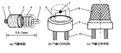 電阻型半導(dǎo)體氣敏元件一般由半導(dǎo)體、加熱器和封裝體等部分組成。加熱器的作用是將附著在敏感元件表面上的塵埃、油霧燒掉,加速氣體的吸附,提高其靈敏度和響應(yīng)速度。加熱器溫度一般控制在200-400℃左右。