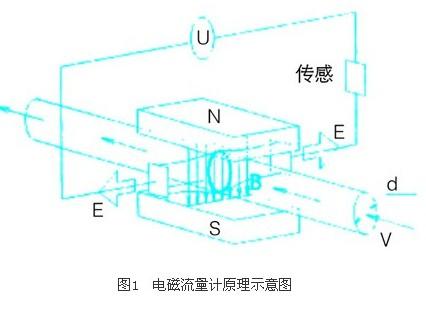 電磁流量計(jì)由變送器和轉(zhuǎn)換器兩部分組成,兩者之間用連接線(包括勵(lì)磁線、信號(hào)線)相互連接。變送器是基于電磁感應(yīng)定律工作的,如圖1所示。