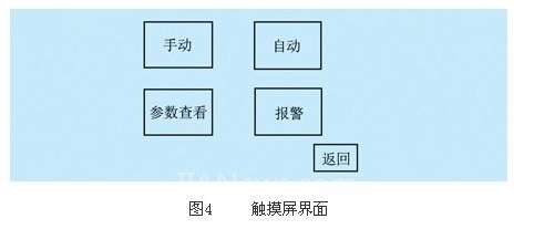 如圖4所示,界面設計包括四大塊:手動、自動、參數(shù)查看、報警。