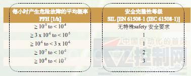 在IEC61508和ISO13849-1標(biāo)準(zhǔn)中,描述了安全功能允許的最大失效概率—每小時危險失效的平均概概率 PFHD。該值越小,則安全等級越高。每小時產(chǎn)生危險故障的平均概率