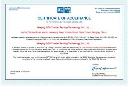 關(guān)于IECEECB體系:CB體系是國際電工委員會(IEC)建立的一套全球互認(rèn)制度。企業(yè)在指定CB實驗室和認(rèn)證機(jī)構(gòu)取得CB測試報告及證書后,可以直接轉(zhuǎn)換CB體系內(nèi)相關(guān)國家的認(rèn)證證書??s短了檢測認(rèn)證的時間,節(jié)約了大量人力和物力成本、為企業(yè)快速進(jìn)入目標(biāo)市場提供了技術(shù)保障。