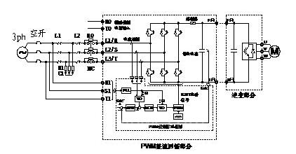 PWM整流回饋部分將三相交流電整流為直流電向直流母線電路供電,直流電路向驅(qū)動(dòng)電機(jī)的逆變器供電。直流電路可以只連接一個(gè)逆變單元,也可以連接多個(gè)逆變單元,具體用戶可以靈活配置。