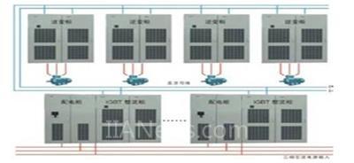 以下為采用英威騰公司IPE200四象限產(chǎn)品的軋線系統(tǒng)結(jié)構(gòu)圖。