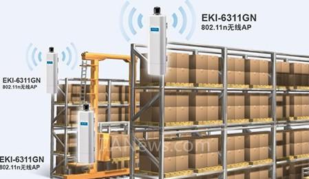 研華推出的EKI-6311GN是一款性能卓越的無線AP/CPE產(chǎn)品,符合IEEE 802.11 b/g/n無線通訊標(biāo)準(zhǔn),可以很好地滿足智能無線通訊倉儲的需求。為解決信號弱的問題,我們將設(shè)備分別安裝在貨架兩端,使用漏波電纜提供無線覆蓋及天線橋接;此外,堆垛機(jī)中的EKI-6311GN可作為客戶端模式(CPE)。由于EKI-6311GN可以輕松實(shí)現(xiàn)整個倉庫無線網(wǎng)絡(luò)覆蓋,并且也可作為網(wǎng)橋即時連接有線設(shè)備到廠區(qū)中心最高網(wǎng)絡(luò),中控室可以無縫連接至倉庫設(shè)備,而堆垛機(jī)中安裝的EKI-6311GN亦可根據(jù)信號強(qiáng)度自動檢測并連接到最佳AP以確??煽客ㄓ?。若PLC通訊接口為串口可通過EKI-1351實(shí)現(xiàn)快速漫游通訊。