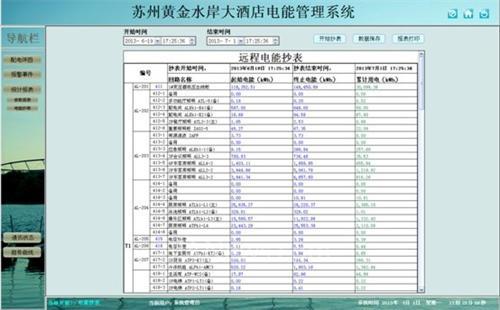 為了實現(xiàn)對酒店各回路用電量的監(jiān)管,系統(tǒng)設計了用電管理報表,系統(tǒng)通過對有功電度的采集,按照回路名稱的不同,自動生成日報表、月報表和年報表并有報表打印功能,并可對某一回路的某一時間段內的用電量進行查詢,可以幫助物業(yè)建立有效的用能管理考核制度。通過系統(tǒng)的建設和制度的建立,使各入駐企業(yè)管理辦公人員節(jié)能意識大大提高,有效的節(jié)約了企業(yè)管理辦公能源消耗。