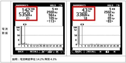 臺達電源治理解決方案有效解決該醫(yī)院面臨的電源質(zhì)量問題,治理后電流波形恢復為正常的正弦波,電壓畸變率由1%降低至0.6%,電流畸變率由14.2%降到4.3%,代表電壓與電流能夠保持穩(wěn)定,去除諧波對高精密醫(yī)療儀器產(chǎn)生的干擾,確保醫(yī)療儀器運作穩(wěn)定可靠,使醫(yī)護人員能夠進行正確治療,病患得到最完善的醫(yī)療照顧,確實降低因電力質(zhì)量可能導致的醫(yī)療風險。