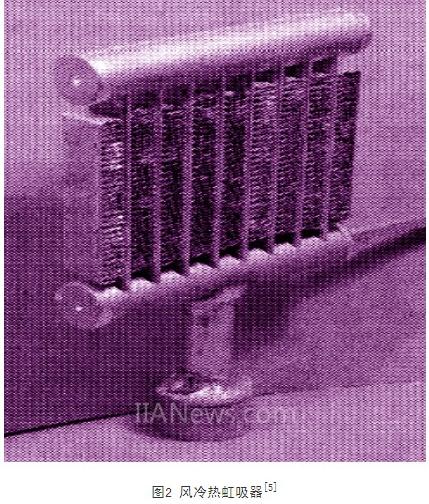 為了使風(fēng)冷系統(tǒng)適應(yīng)高熱密度散熱的新要求,熱設(shè)計人員通過改變電子元器件的封裝技術(shù)和形式、設(shè)計新型的風(fēng)冷裝置使風(fēng)冷系統(tǒng)具有更廣闊的適用范圍。在改變封裝形式方面,采用基片在上的倒封裝技術(shù)制造的倒裝芯片(flip chip)、直接利用印制電路板做基體的球柵列陣(bga)等手段都提高了封裝模塊的散熱性能。在新型風(fēng)冷裝置的設(shè)計上,ralph ,shinnobu yamauchi[5]等人為電腦的cpu設(shè)計了一種名為風(fēng)冷熱虹器的散熱裝置(air-cooled thermosyphon),其結(jié)構(gòu)如圖2所示。該裝置由熱虹吸器和散熱片組成,熱虹吸器的管殼材料為鋁,工質(zhì)為r134a,散熱片的迎風(fēng)面積為75×90mm(16mm寬)。實驗方法仍是對一塊16×16mm的銅板均勻加熱,實驗結(jié)果表明,cpu表面溫度在許可范圍內(nèi)時,銅板最大加熱密度為39w/cm2,即采用該裝置能從cpu上帶走100w的熱量,這是目前報道的散熱能力最大的風(fēng)冷裝置。該裝置的缺陷是安裝方位只能取豎直方向,因為熱虹吸器內(nèi)沒有芯體,液體只能依靠重力回到加熱表面。