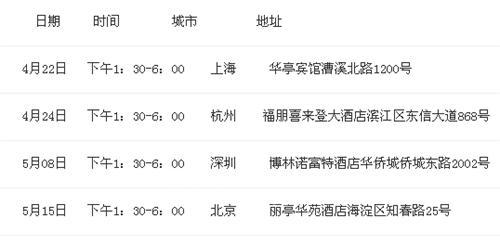 本次巡回隨后還將分別在杭州、深圳、北京三大城市舉辦,網(wǎng)絡(luò)報(bào)名請(qǐng)點(diǎn)擊:。