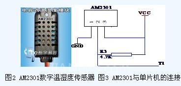用戶主機(jī)(MCU)發(fā)送一次開始信號(hào)后,AM2301從低功耗模式轉(zhuǎn)換到高速模式,等待主機(jī)開始信號(hào)結(jié)束后, AM2301發(fā)送響應(yīng)信號(hào),送出40bit的數(shù)據(jù),并觸發(fā)一次信號(hào)采集。(注:主機(jī)從AM2301讀取的溫濕度數(shù)據(jù)總是前一次的測(cè)量值,如兩次測(cè)量間隔時(shí)間很長,請(qǐng)連續(xù)讀兩次以獲得實(shí)時(shí)的溫濕度值),并且與單片機(jī)連接簡單如圖圖3所示。