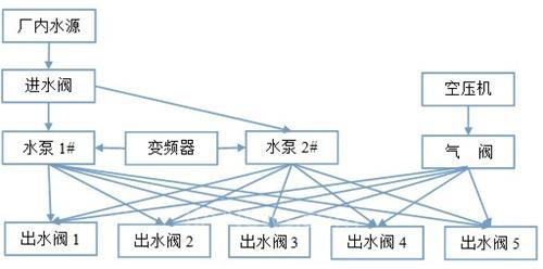 1.變頻器控制加壓泵將加壓水經(jīng)氣動閥送到所需噴水區(qū)進(jìn)行噴淋降塵。