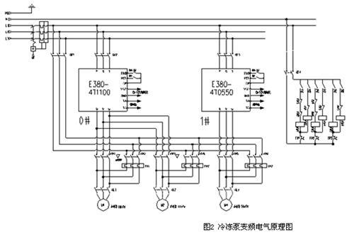 冷卻水循環(huán)系統(tǒng)和冷卻塔系統(tǒng)變頻控制原理和冷凍水循環(huán)系統(tǒng)變頻控制原理相同,在方案中保留原工頻系統(tǒng)的基礎(chǔ)上加裝變頻控制系統(tǒng),與原工頻系統(tǒng)之間僅設(shè)置連鎖以確保系統(tǒng)工作安全。